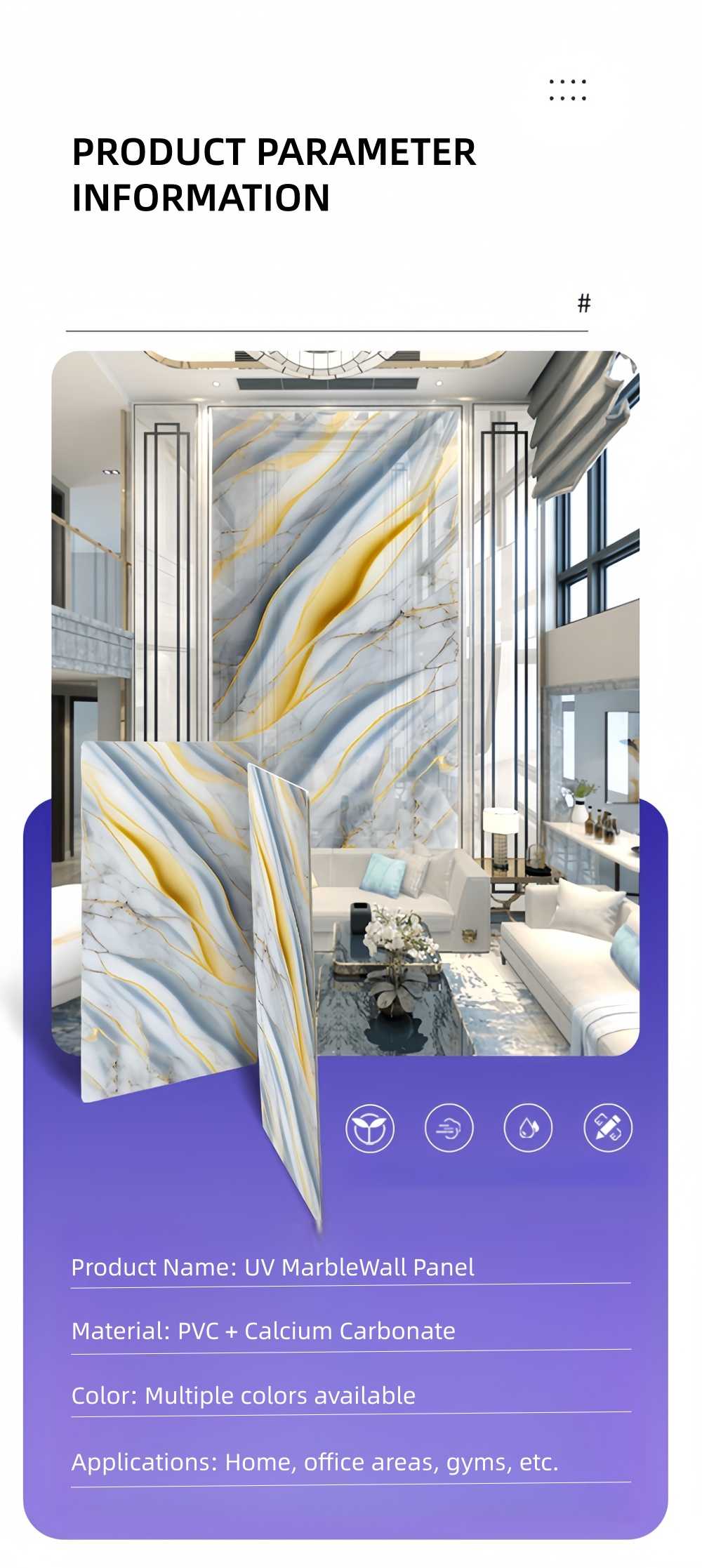 Applicable areas Interior walls, feature walls, column cladding, wall panels